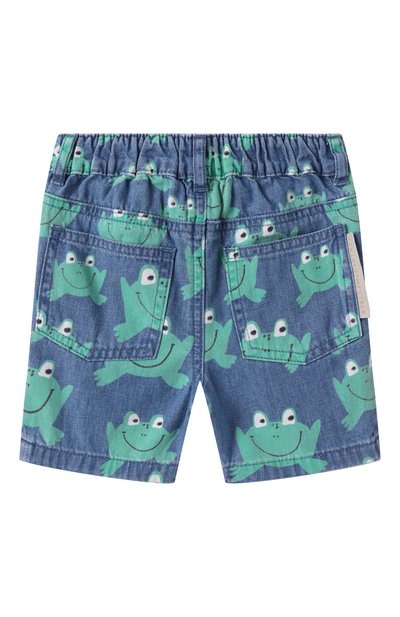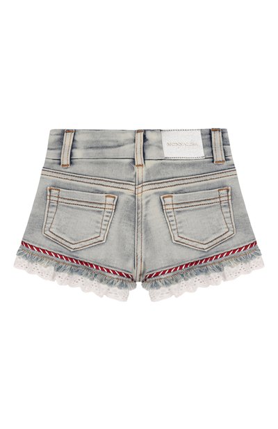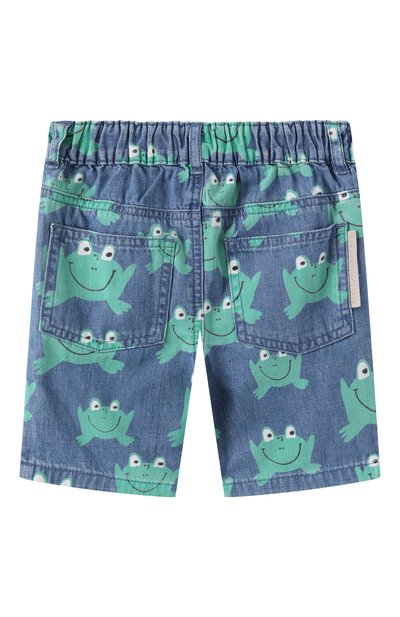 Джинсовые шорты с полосами и принтом, напоминающим детские рисунки, выполнили из хлопкового денима. Один из пяти карманов дополнили брендированным ярлыком.