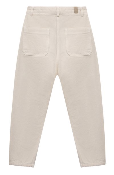 Джинсы свободного кроя сшиты из стрейчевого хлопкового денима. Один из четырех карманов украшен вышитым логотипом марки, а эластичный пояс дополнен сзади съемным кру пным бантом.