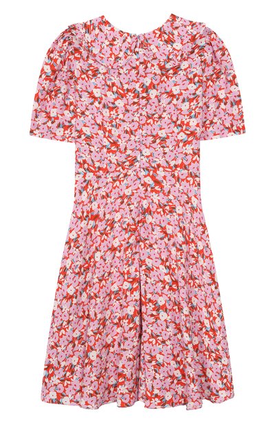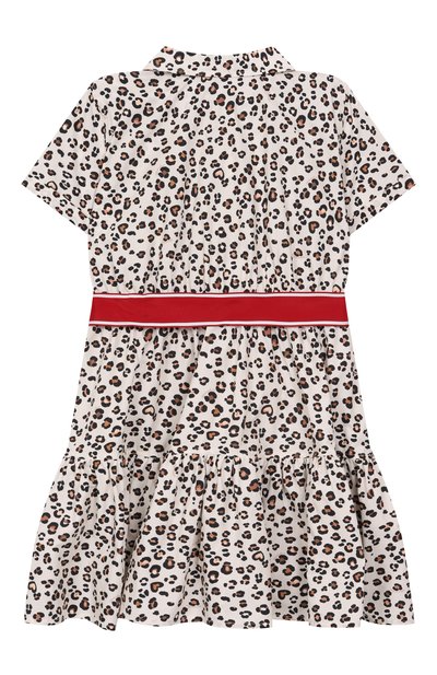 Платье с тонкой подкладкой выполнили из хлопка с добавлением полиэстера. Модель с леопардовым принтом застегивается потайной молнией сзади.
