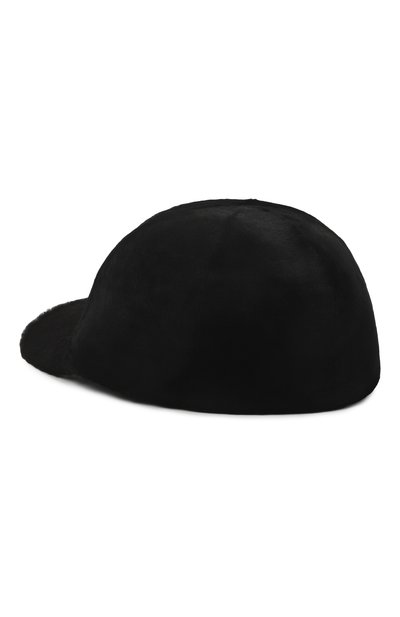 Бейсболку с отделкой из кожи выполнили из меха черной норки, обработанного под бархат. Головной убор с потайным корректором размера дополнили фирменным гофрированным подкладом.