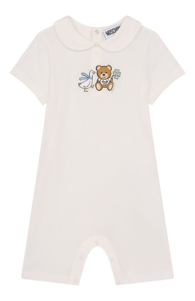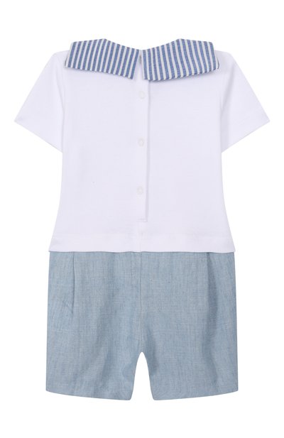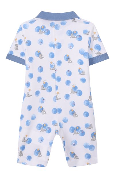 Песочник с плоскими кнопками вдоль шагового шва выполнен из принтованного жатого хлопка. Модель, застегивающаяся пуговицами спереди, украшена небольшой вышитой эмблемой марки.
