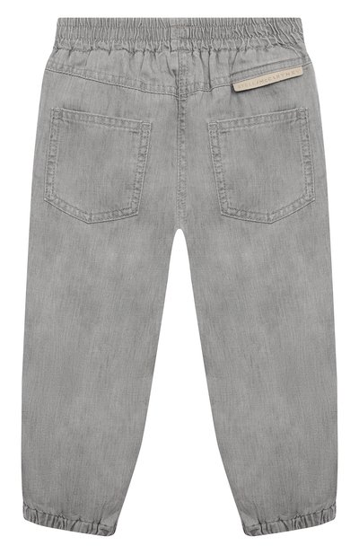 Джинсы с декоративными ширинкой и боковыми карманами сшили из эластичного хлопкового денима с легкими потертостями. Модель дополнили широким трикотажным поясом.