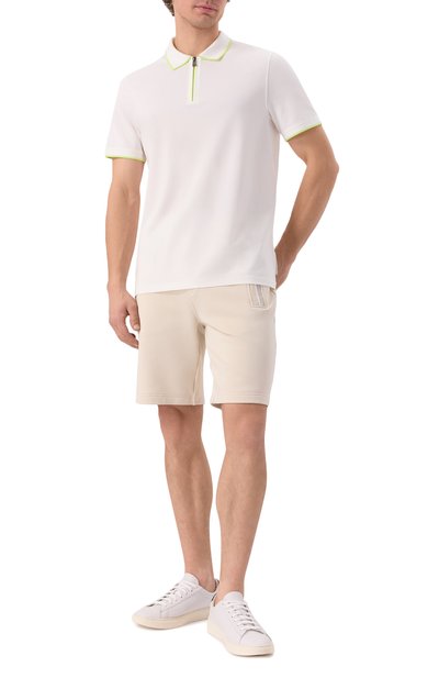 Поло Cody с фирменной эмблемой на левом рукаве сшили из полиэстерового трикотажа. Контрастные полосы на воротнике и манжетах поддержали оттенком короткой молнии, прикрывающей брендированную планку.