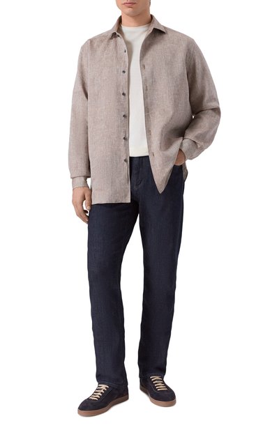 Полуприталенная рубашка Timi с воротником кент выполнена из чистого льна. Модель с вышитой эмблемой марки на груди и брендированными пуговицами B-Signé на манжетах органично дополнит повседневный гардероб.