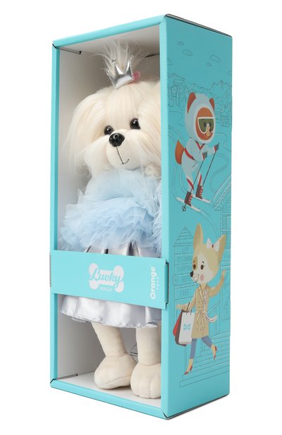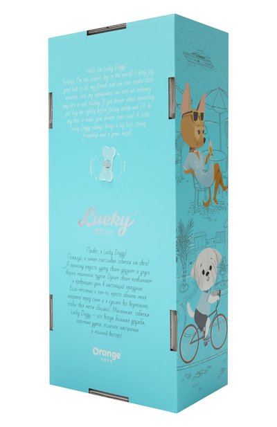 Йоркширского терьера Lucky Yoyo сшили из комбинации искусственного меха и велюра. Игрушку с металлическим каркасом и гранулированным наполнителем одели в клетчатую рубашку и брюки.