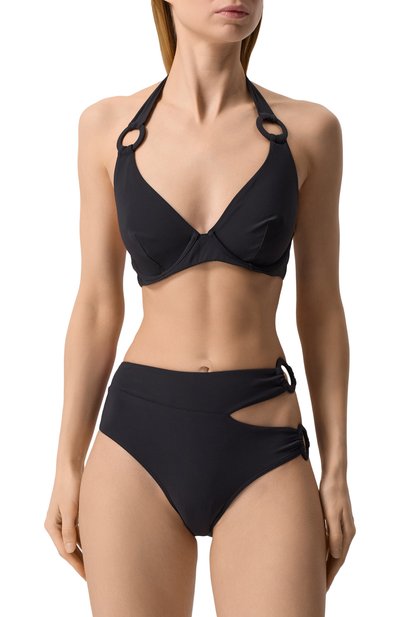 Бра-топ из коллекции Sparkling Treasure выполнили из стрейчевого нейлона. Спереди изделие украсили цепочкой с продетой в нее лентой. Модель со съемными регулируемыми бретелями дополнили застежкой сзади.