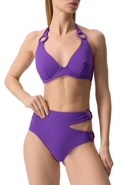 Треугольный бра с эффектом пуш-ап и широкими бретелями выполнен из эластичного полиамида. Модель из линии Summer Essence дополнена парой декоративных колец и золотистым замком.