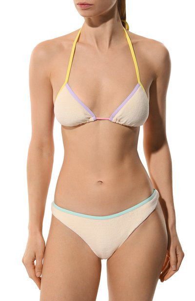 Плавки Caracus с фактурным шевронным мотивом изготовили из эластичного быстросохнущего материала на основе переработанного нейлона. Модель с поддерживающим подкладом Powermesh украсили сзади золотистой брендированной пластиной.