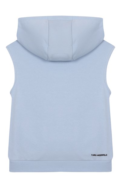 Меланжевое худи без рукавов сшито из хлопкового футера. Модель с широким поясом в рубчик украшена изображением фирменной поясной сумки спереди.