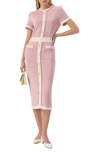 Атласная миди-юбка с высоким разрезом сшита из микса шелка и шерсти. Модель с вискозным подкладом застегивается потайной молнией сбоку. Наши стилисты предлагают создать образ с парным жакетом и босоножками на шпильке.