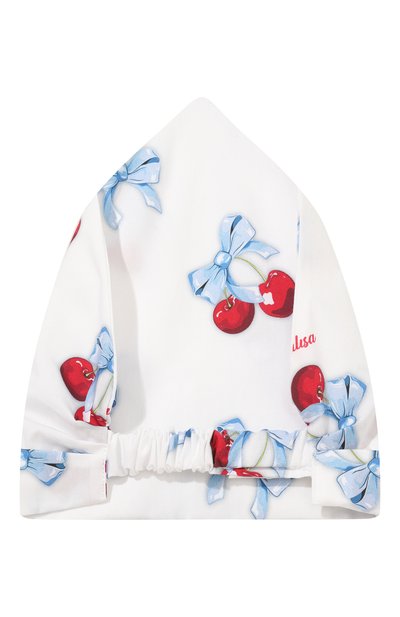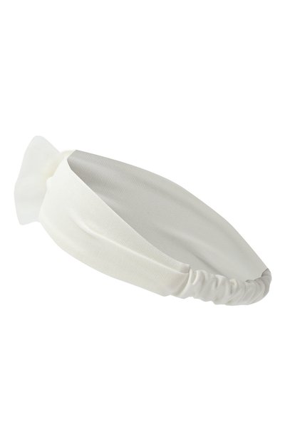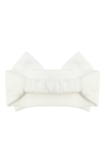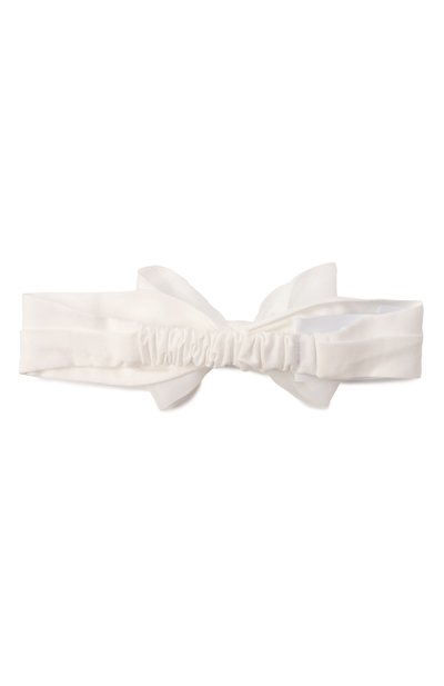 Повязку на голову сшили из тонкого хлопка в крупный горох. Драпированный аксессуар с эластичной вставкой сзади украсили крупным бантом спереди.