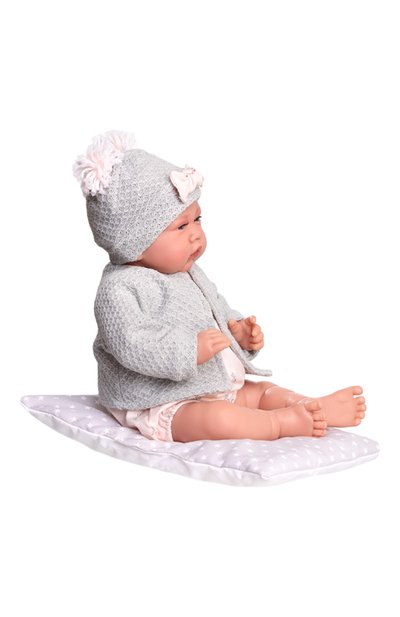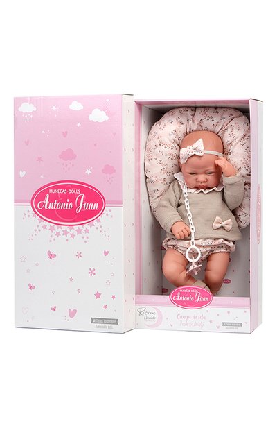 Куклу-младенца «Пабло» изготовили из винила Soft-touch. Детально проработанного пупса одели в комбинезон и чепчик с рюшами. В комплекте — подушка, одеяло и пустышка с держателем в виде мишки.
