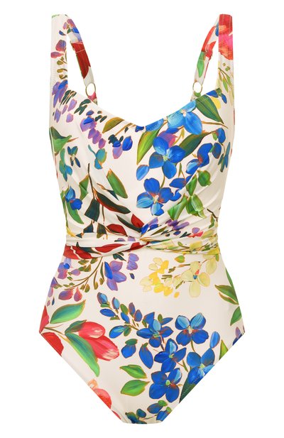 Слитный купальник Garden Dreams с широкими бретелями, фигурным декольте и открытой спиной изготовили из микса переработанного нейлона и волокон Extra Life Lycra®. Модель дополнили драпированной вставкой, подчеркивающей талию спереди.
