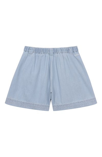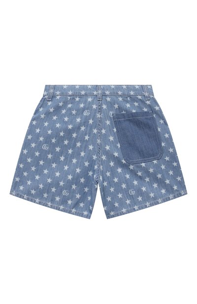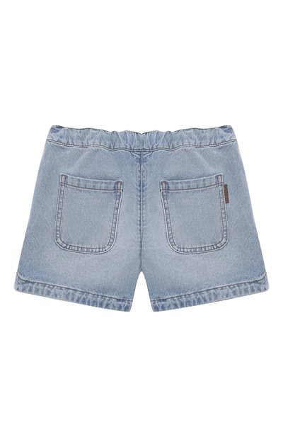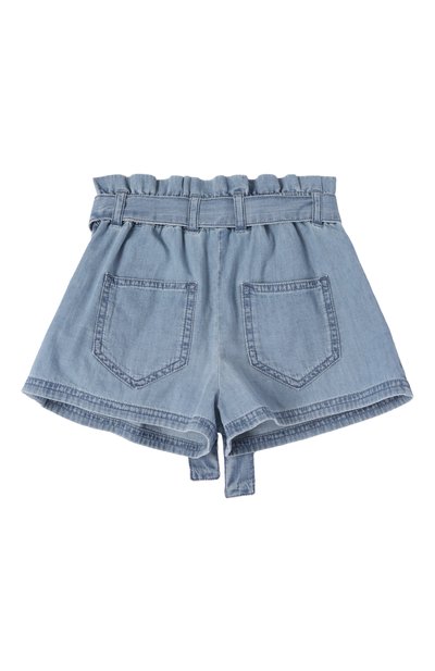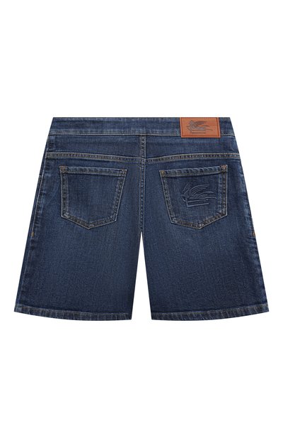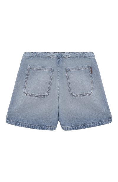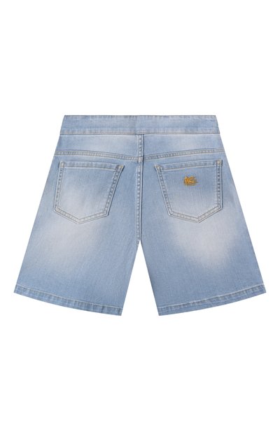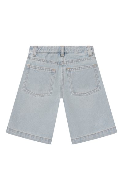 Шорты с клапаном-лацбантом, застегивающимся фирменными пуговицами с головой льва, сшили из слегка эластичного хлопкового денима. Модель дополнена тремя парами карманов: задними накладными, боковыми и монетными.