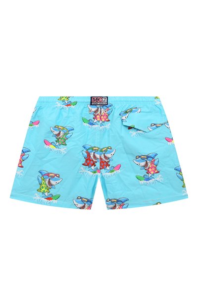 Плавки-шорты с изображением скейтов сшили из переработанного полиэстера. Модель с уровнем защиты от ультрафиолета UPF 50 дополнили эластичным поясом со шнуровкой и тремя карманами.