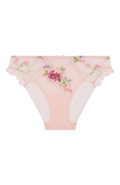 Слипы из линии Libertine en Fleurs выполнили из смесового стрейчевого тюля. Модель с хлопковой ластовицей украсили цветочной вышивкой, а сзади изделие дополнили атласным бантом.