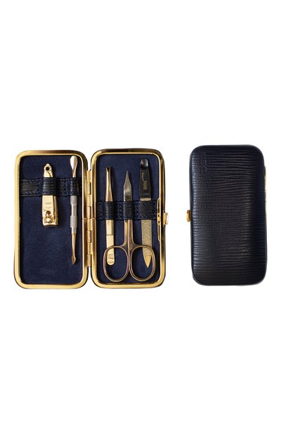 Компактный набор поможет без лишних усилий поддерживать ухоженный вид ногтей в поездках. Универсальные ножницы, клиппер, пилка, пинцет и двойной инструмент для маникюра выполнены из высокоуглеродистой стали СК 45 DIN с гальваническим покрытием никелем и золотом. Острые лезвия заточены вручную. Кожаный чехол на металлическом каркасе с защелкой не помнется и не откроется в дорожной сумке.