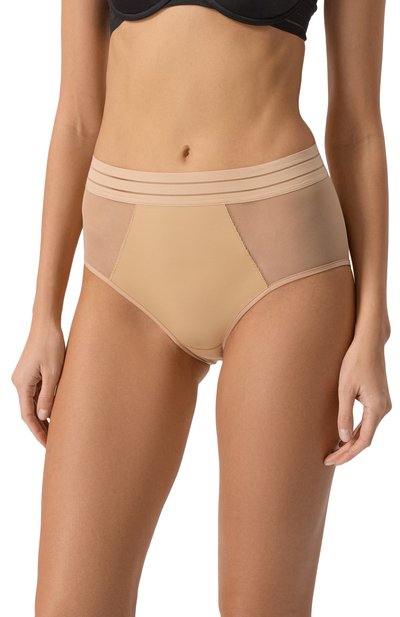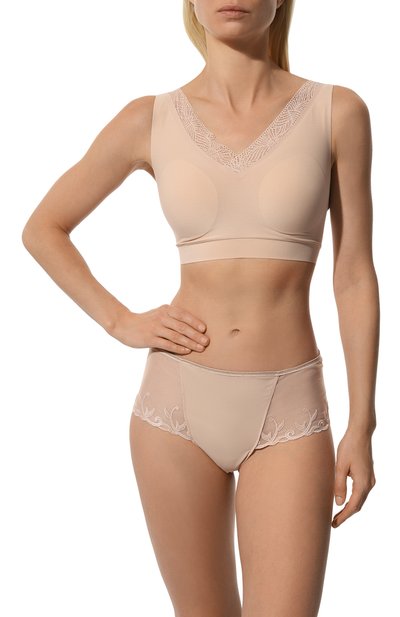 Трусы из коллекции Sheer Emotion выполнили из эластичного материала на основе переработанного полиамида. Модель с хлопковой ластовицей декорировали по бокам вставками из тюля с фактурной вышивкой.