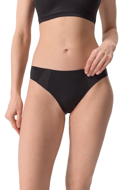 Трусы из коллекции Sheer Emotion выполнили из эластичного материала на основе переработанного полиамида. Модель с хлопковой ластовицей декорировали по бокам вставками из тюля с фактурной вышивкой.
