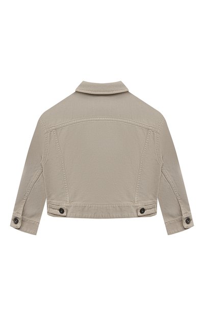 Для пошива куртки-рубашки с четырьмя карманами использовали чуть эластичный хлопковый деним с выбеленным паттерном PB. Модель застегивается фирменными золотистыми пуговицами с головой льва. Сзади над поясом ‒ брендированный патч.