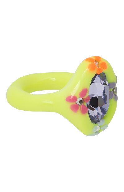 Массивное кольцо выполнили из полимерной глины. Расписанное вручную украшение декорировали крупным кристаллом и мелкими стразами Swarovski.