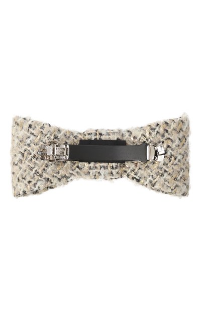 Бант «Стрекоза» выполнили из шелка с льняной фактурой. Зажим-автомат поместили в силиконовый чехол, поэтому аксессуар не скользит по волосам.