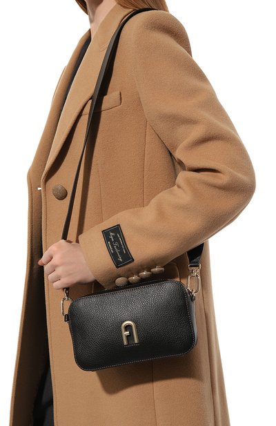Сумку Furla Lotus с регулируемым плечевым ремнем выполнили из крупнозернистой кожи. Модель с плоским отсеком и карманом на молнии закрывается фирмен ным поворотным замком Arch.