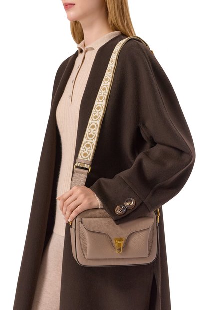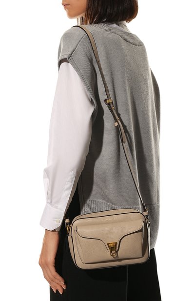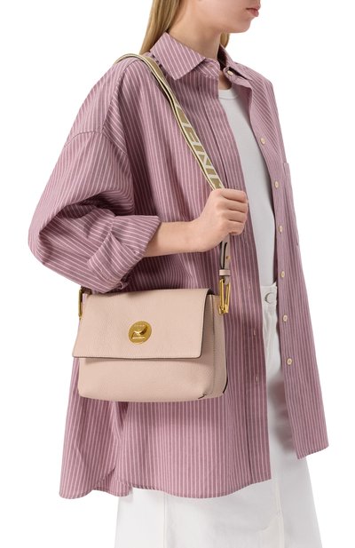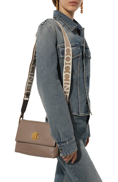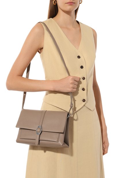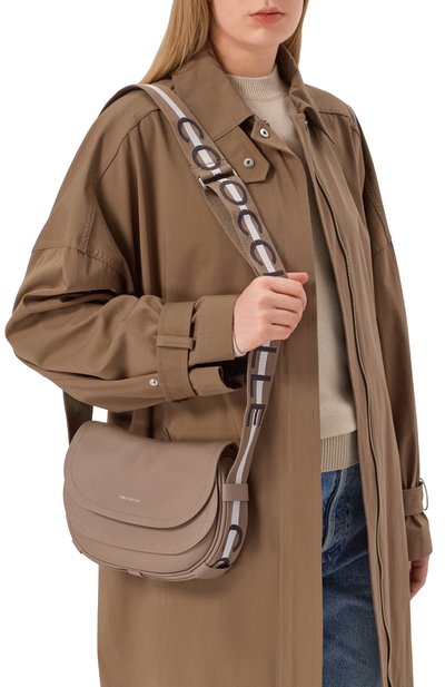 Сумку Lotus с регулируемым брендированным ремнем из текстиля выполнили из крупнозернистой кожи. Аксессуар дополнили плоским карманом под клапаном, закрывающимся поворотным замком в виде эмблемы Arch.