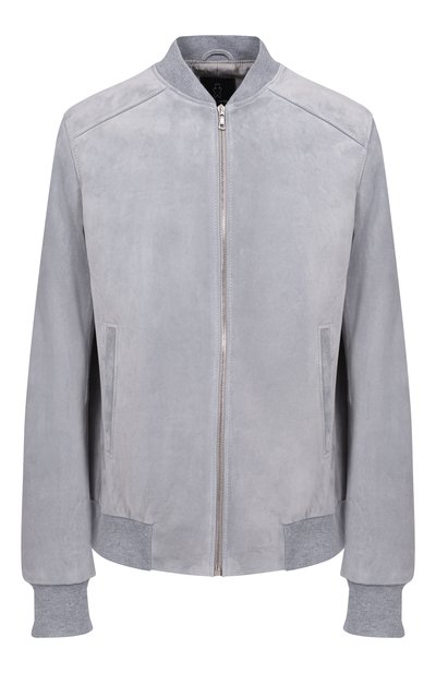 Для пошива бомбера с вискозным подкладом выбрали замшу. Модель с трикотажными широкими манжетами, поясом и воротником-стойкой дополнили двумя боковыми карманами.