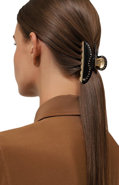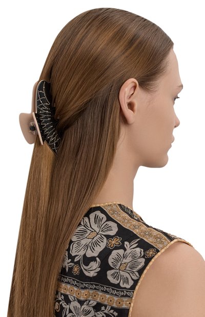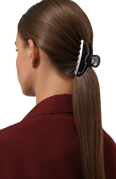 Заколку Vendome украсили контрастными скульптурными цветами с кристаллами вместо сердцевины. Аксессуар с закругленными зубчиками изготовили из глянцевого ацетата.