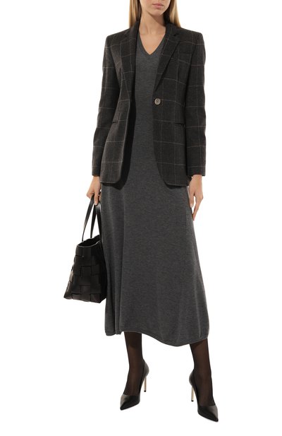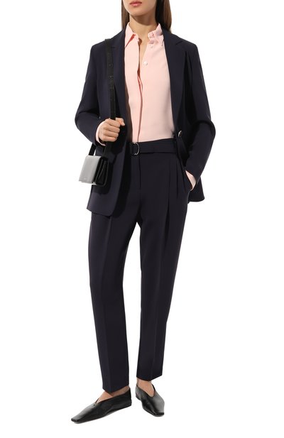 Для пошива однобортного жакета Iconic свободного кроя использовали костюмную ткань на основе тонкой шерсти. Модель с широкими заостренными лацканами и шлицей дополнили боковыми карманами с клапанами.