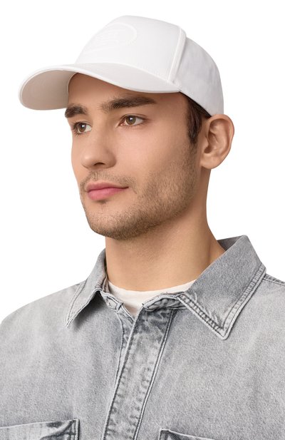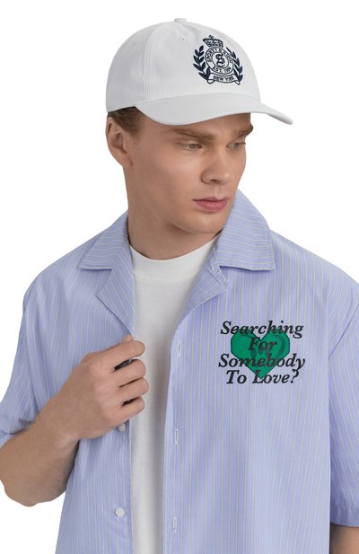 Бейсболку Mats на полиэстеровом подкладе выполнили из хлопкового твила. Аксессуар с брендированной пряжкой и четырьмя люверсами украсили вышитым логотипом в тон.