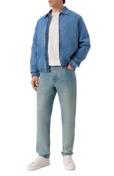 Для пошива джинсов с эластичным поясом выбрали хлопковый деним плотностью восемь унций. Модель с четырьмя карманами дополнили отворотами в тон.