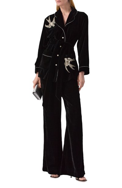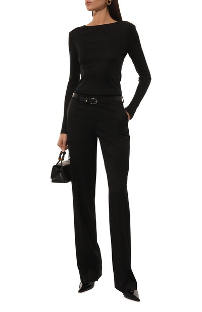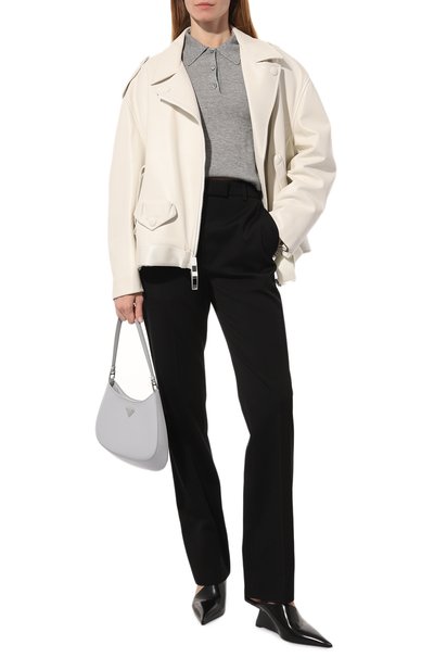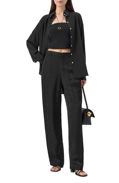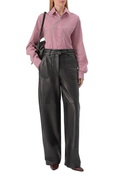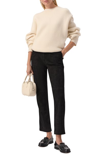 Для пошива брюк Suave с парой задних и двумя боковыми карманами использовали замшу. Лаконичная модель застегивается на молнию и крючок.