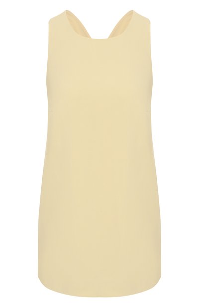 Для пошива топа с круглым вырезом использовали шелковистую ткань из полиэстера. Переплетающиеся на открытой спине широкие бретели формируют мягкую складку.