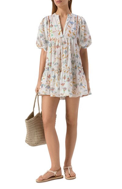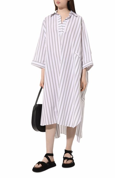Макси-платье Savannah с открытым плечом сшито из полупрозрачного полиэстера с зигзагообразными узорами. Укороченный рукав асимметричной модели свободного кроя украшен брендированной пластиной.