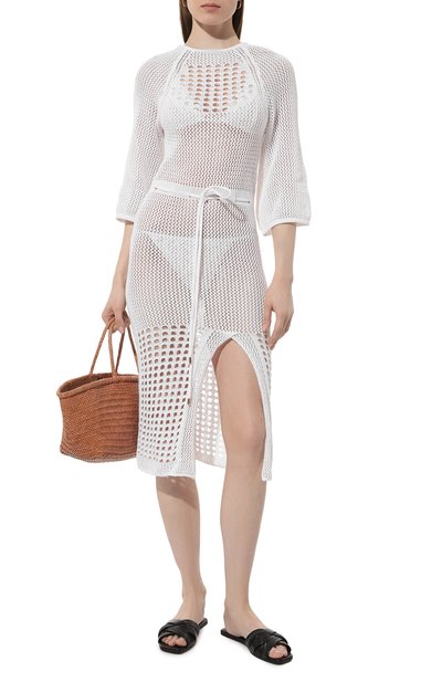 Макси-платье Savannah с открытым плечом сшито из полупрозрачного полиэстера с зигзагообразными узорами. Укороченный рукав асиммет ричной модели свободного кроя украшен брендированной пластиной.