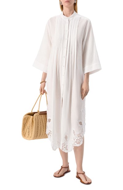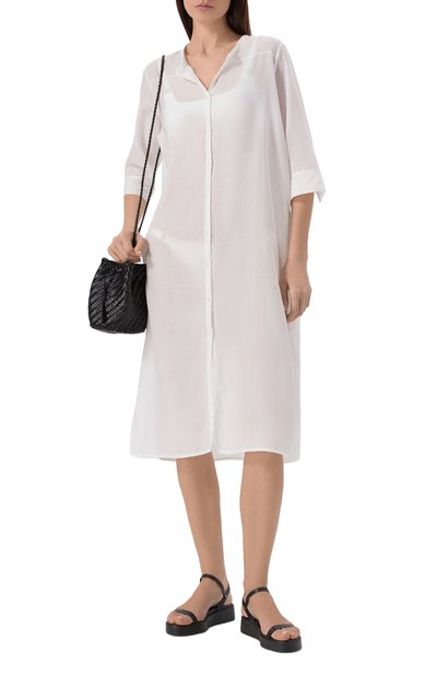 Обхват груди 148 см, длина рукава от горловины 50 см, обхват талии 148 см, обхват бёдер 145 см, длина изделия по спинке 143 см, минимальная длина изделия 85 см.