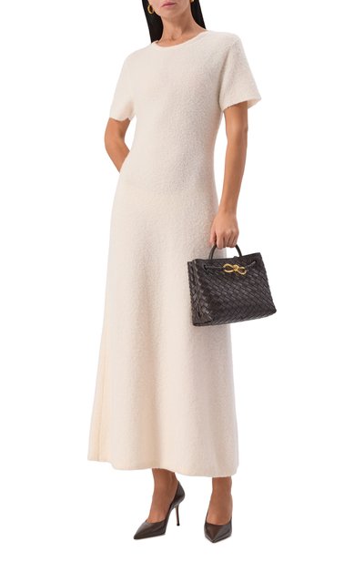 Платье-футляр с высоким разрезом сшито из эластичного микса полиэстера и вискозы. Модель, застегивающаяся потайной молнией сзади, дополнена двумя карманами с фигурными клапанами.