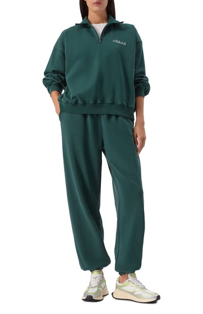 Oversize-свитшот выполнили из хлопкового трикотажа с добавлением полиэстера. Модель с нагрудной молнией украсили логотипом, вышив его контрастной нитью спереди.