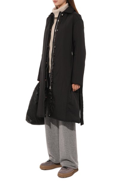 Oversize-куртку с отложным воротником и супатной застежкой дополнили боковыми карманами. Утепленную модель из плотного хлопка украсили фирменной нашивкой с отполированным шунгитом под горловиной сзади.