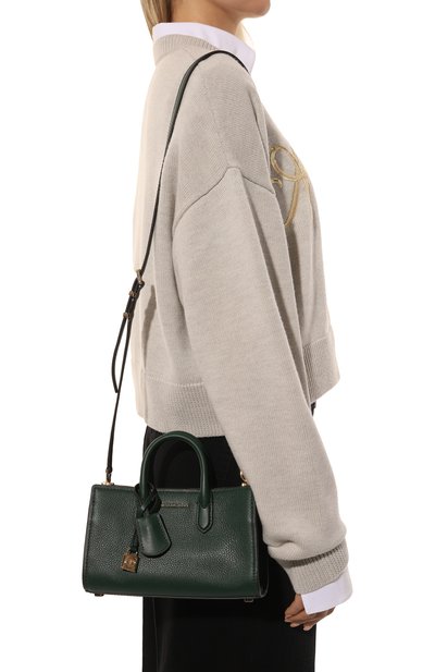 Сумку Furla Goccia с двумя короткими ручками выполнили из телячьей кожи, а для отделки использовали кожу Sidney. Аксессуар с парой внутренних карманов застегивается ремешком с фурнитурой Arch. В комплекте — регулируемый ремень.
