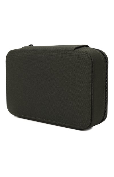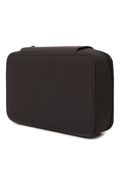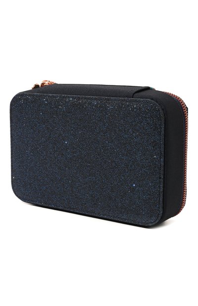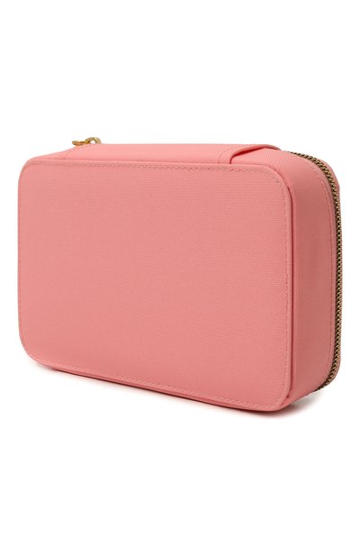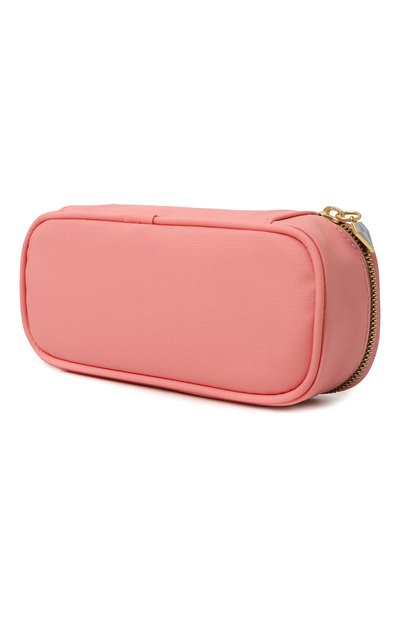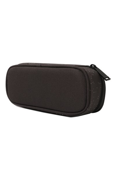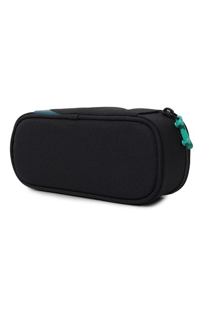Пенал с аппликацией, подчеркнутой кристаллами, выполнили из полиэстера. Аксессуар с шестью внутренними удерживающими петлями застегивается молнией с брендированным пуллером.