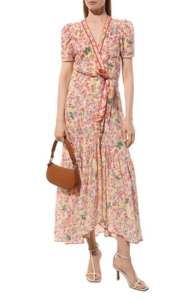 Мини-платье Alpinia с хлопковой подкладкой выполнили изо льна с цветочным принтом. Спереди модель дополнили планкой с обтяжными пуговицами, а сзади расположили потайную молнию. В комплекте — узкий регулируемый пояс.