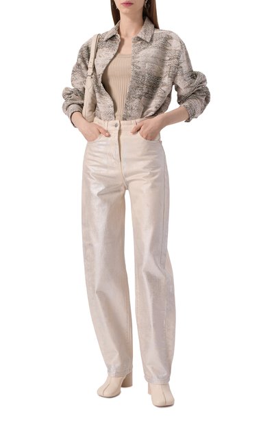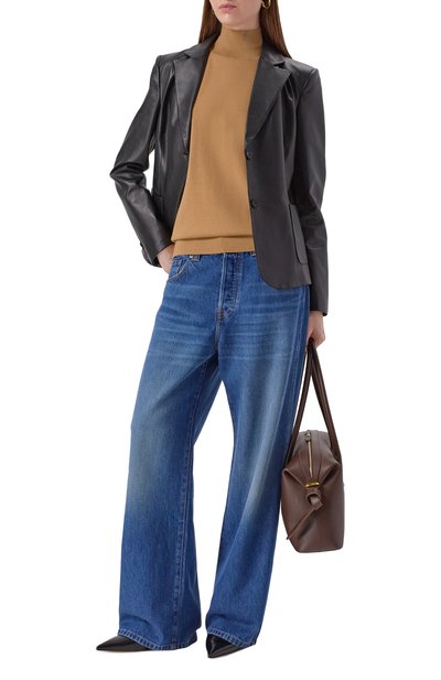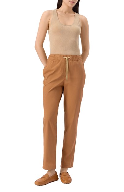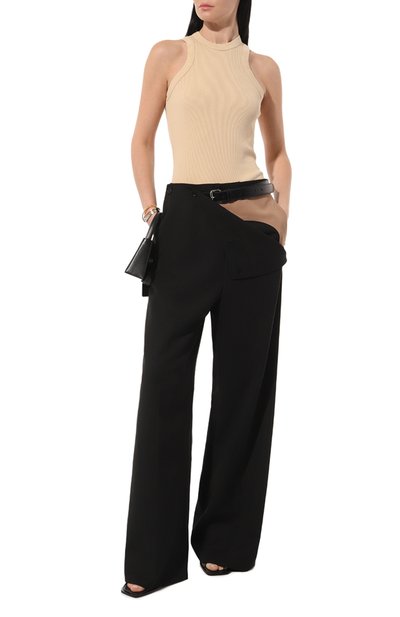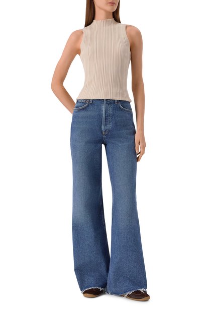 Облегающая майка с круглым вырезом и глубокими проймами выполнена из хлопкового трикотажа с добавлением кашемира. Модель без декора легко впишется в базовый гардероб.