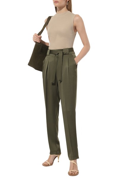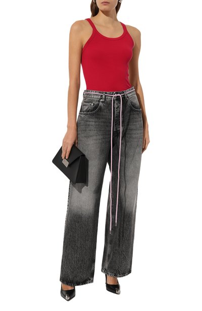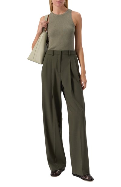Облегающая однотонная майка удачно дополнит непринужденный повседневный образ с толстовкой и брюками. Для пошива модели с глубокими проймами и круглым вырезом использовали рифленый хлопковый трикотаж с добавлением кашемира.