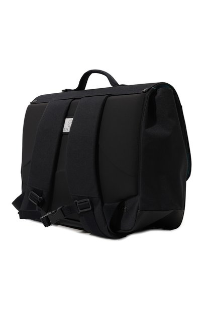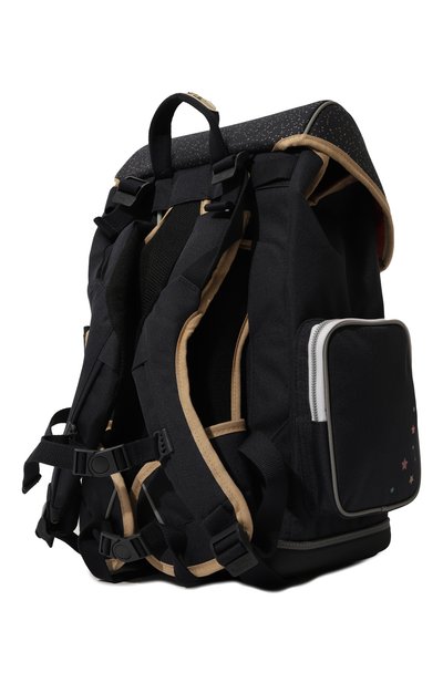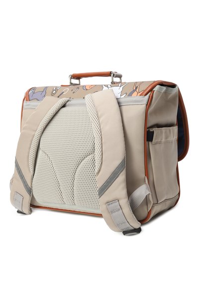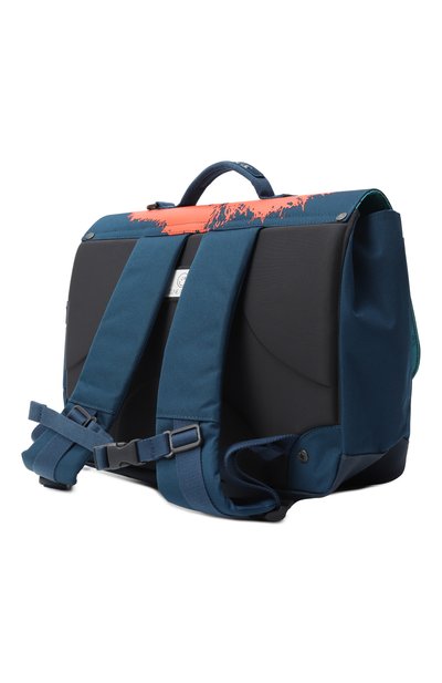 Портфель с принтом Cosmic Expedition выполнили из водоотталкивающего полиэстера, а вставку на спинке – из сетки с пенным наполнителем. Помимо крупного кармана на передней панели у изделия предусмотрели небольшой боковой, а S-образные регулируемые лямки подчеркнули светоотражающими полосами. Аксессуар с двумя внутренними отделениями дополнили кольцом для ключей и слотом для адресной карточки.