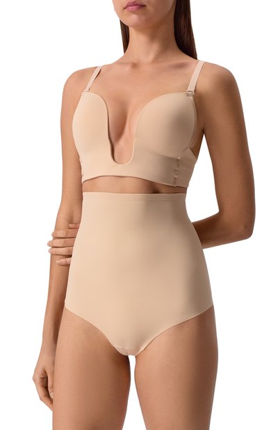 Трусы Waist Control с высокой посадкой и хлопковой ластовицей изготовили из вторичной микрофибры. Края модели с утягивающим эффектом в области талии и живота обработали лазером и дополнили силиконовыми лентами, поэтому она останется незаметной под одеждой.