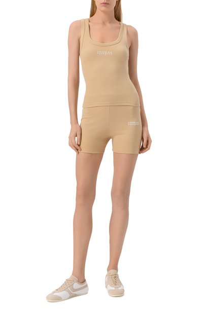 Короткие шорты Bella Mini выполнили из нейлона с добавлением спандекса. Широкий эластичный пояс велосипедок украсили эмблемой марки сзади.