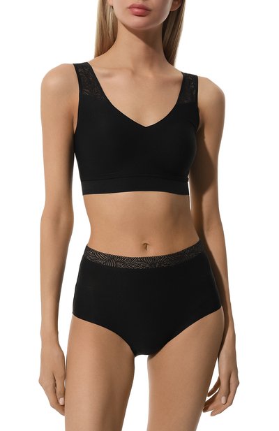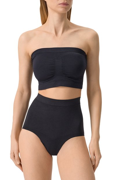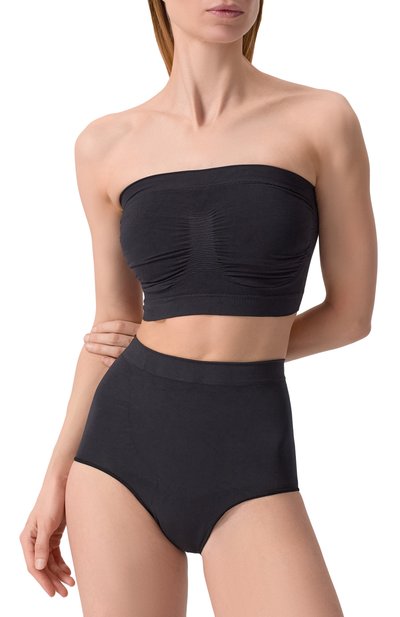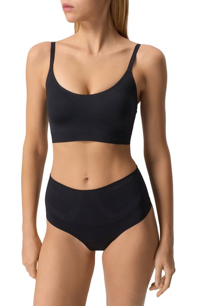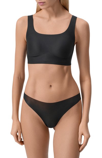 Бра-топ с драпировкой, формирующей чашечки, вошел в коллекцию Soft Touch. Для изготовления бесшовной модели использовали эластичную микрофибру на основе нейлона.